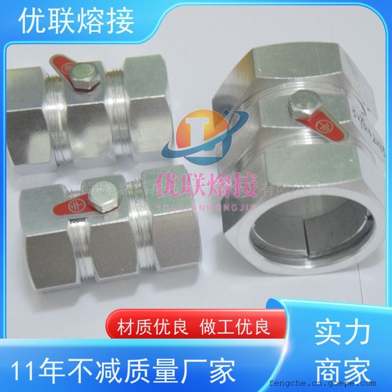 接:在已热塑好的电缆一端再套上大一号的热塑管及联接器外套管。采用配套的铜管将要连接的电缆线芯套在一起,两线芯不得相交,在套管中间不得有空隙,即相连接的线芯端头应相互连接在一起。在安套管时,套管与已热塑好的热塑管端头相连。但不得压住已热塑好的热塑管。采用压接钳压接已套好的热塑管。压接时,各线芯上的套管应整齐。压接可一起压接,也可分芯压接,但压接完diyi遍后,压接钳旋转90度后,再压接一次。在压接过程中。必须保证被压接的线芯无毛刺。以免刺破外面的热塑管。同时在压接时,必须保证电缆在同一直线上。保证联接器套管顺利套进其中。压接好后,将热塑管放在套管上。再一将加热,使铜导管有很好的绝缘(如图十)。