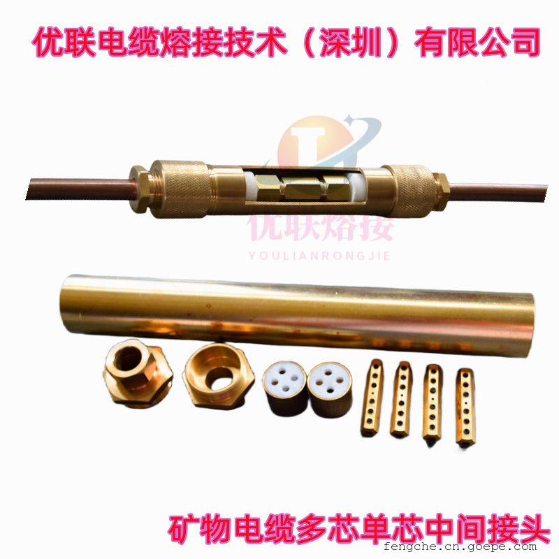 接:在已热塑好的电缆一端再套上大一号的热塑管及联接器外套管。采用配套的铜管将要连接的电缆线芯套在一起,两线芯不得相交,在套管中间不得有空隙,即相连接的线芯端头应相互连接在一起。在安套管时,套管与已热塑好的热塑管端头相连。但不得压住已热塑好的热塑管。采用压接钳压接已套好的热塑管。压接时,各线芯上的套管应整齐。压接可一起压接,也可分芯压接,但压接完diyi遍后,压接钳旋转90度后,再压接一次。在压接过程中。必须保证被压接的线芯无毛刺。以免刺破外面的热塑管。同时在压接时,必须保证电缆在同一直线上。保证联接器套管顺利套进其中。压接好后,将热塑管放在套管上。再一将加热,使铜导管有很好的绝缘(如图十)。